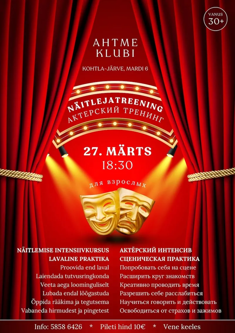 Ahtme klubi kutsub täiskasvanuid 30+ praktilisele näitlemise intensiivkursusele koos lavalise praktikaga.