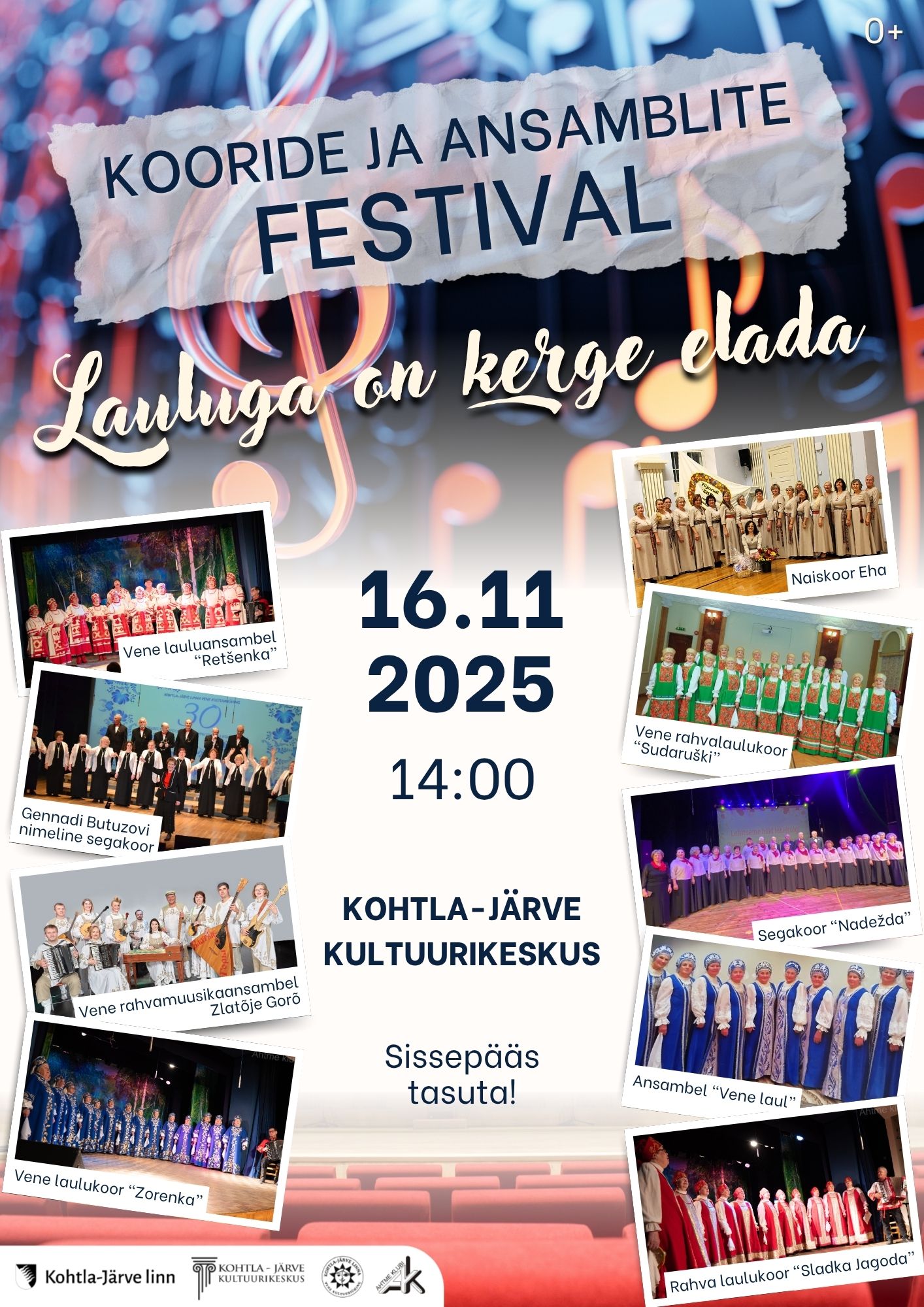 16. novembril 2025 kell 14:00 toimub Kohtla-Järve Kultuurikeskuses kooride ja ansamblite festival, kus parimad Eesti laulukollektiivid toovad kuulajateni elava muusika rõõmu ja ühtsuse laulu kaudu.
