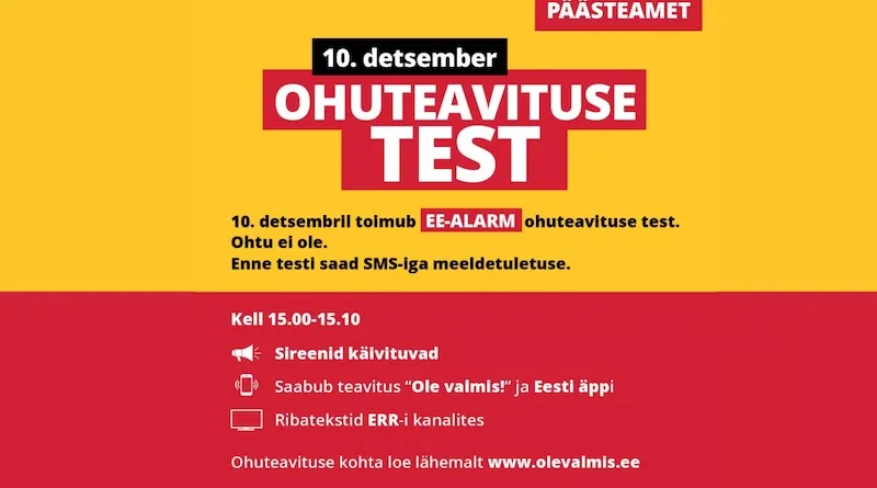 Päästeameti pressiteade: https://www.rescue.ee/et/uudised/10-detsembril-toimub-ohuteavituse-jaerjekordne-ueleriigiline-test-kaeivitatakse-ka-sireenid-3204