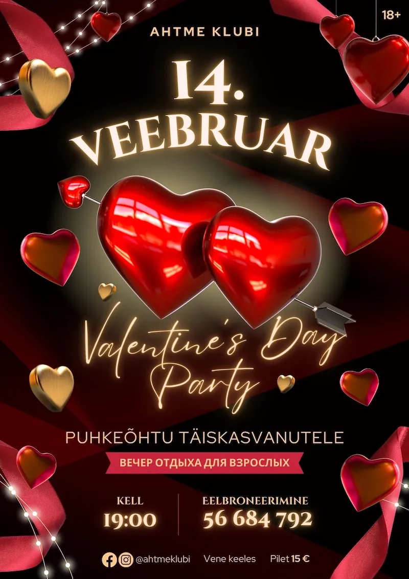 14. veebruaril kutsub Ahtme Klubi sind Valentine’s Day Party’le – stiilsele ja emotsionaalsele õhtule täis flirti, tantsu ja kauneid hetki. 💃🕺