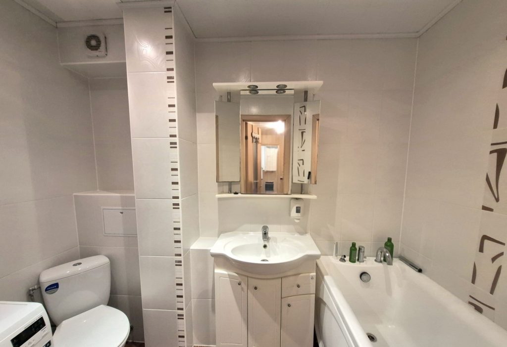 В кухне остаётся встроенный гарнитур, посудомойка, стиральная машинка, почти вся мебель. В ванной комнате выполнен ремонт, что обеспечит вам беззаботный повседневный комфорт.