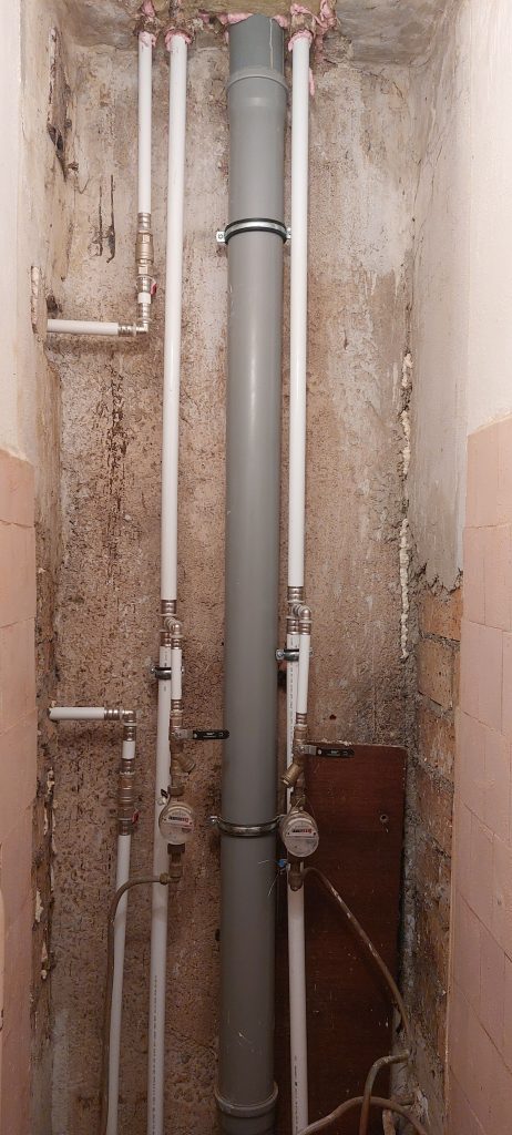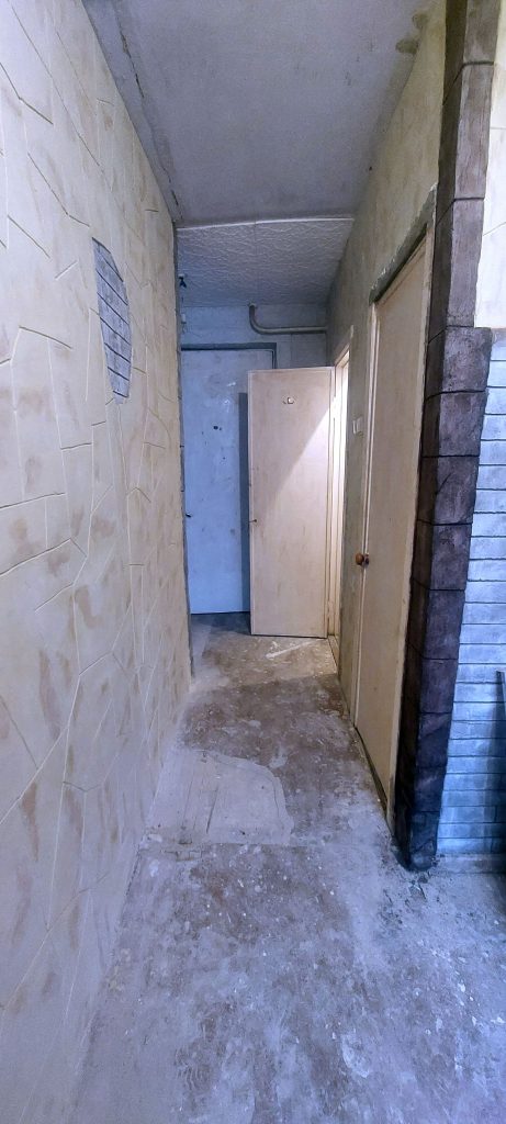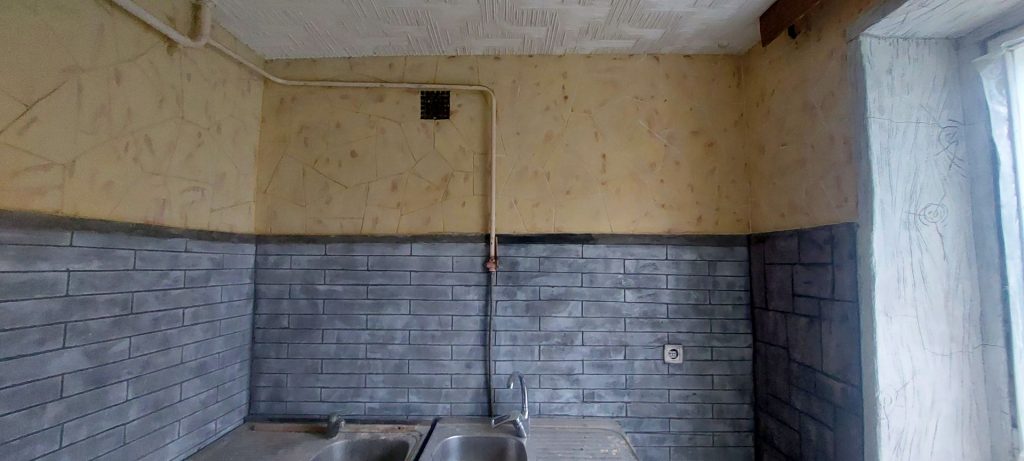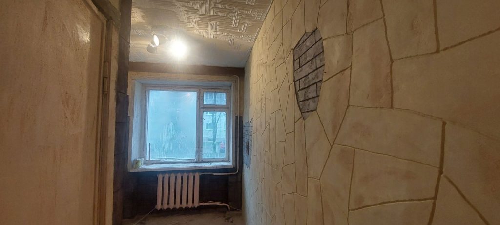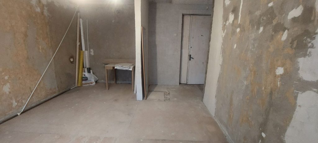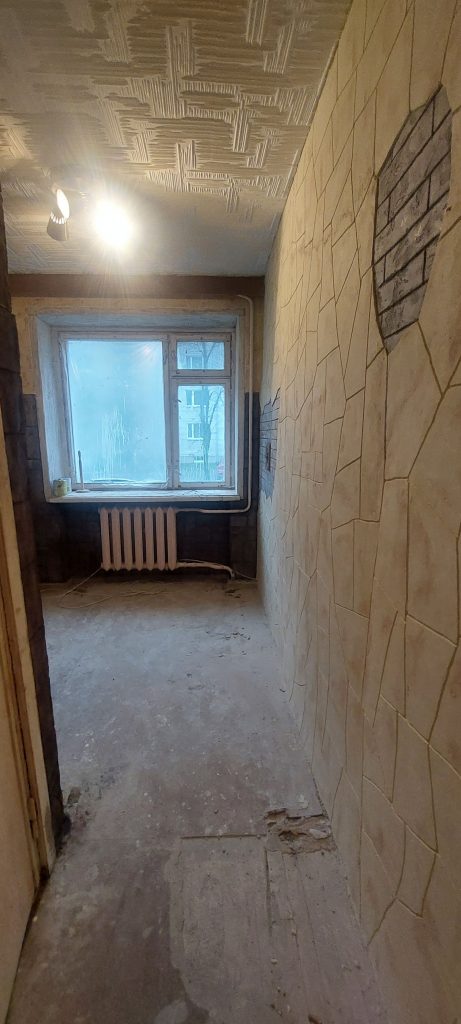 выполнен полный демонтаж старых отделочных материалов,