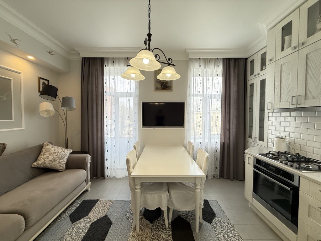 В продаже — элегантная квартира площадью 49 м² в доме старого фонда, сочетающем в себе архитектурный характер и современные решения. Высокие потолки формируют ощущение пространства, света и утончённой атмосферы.
