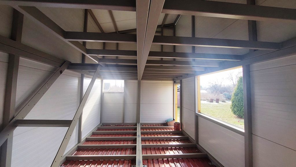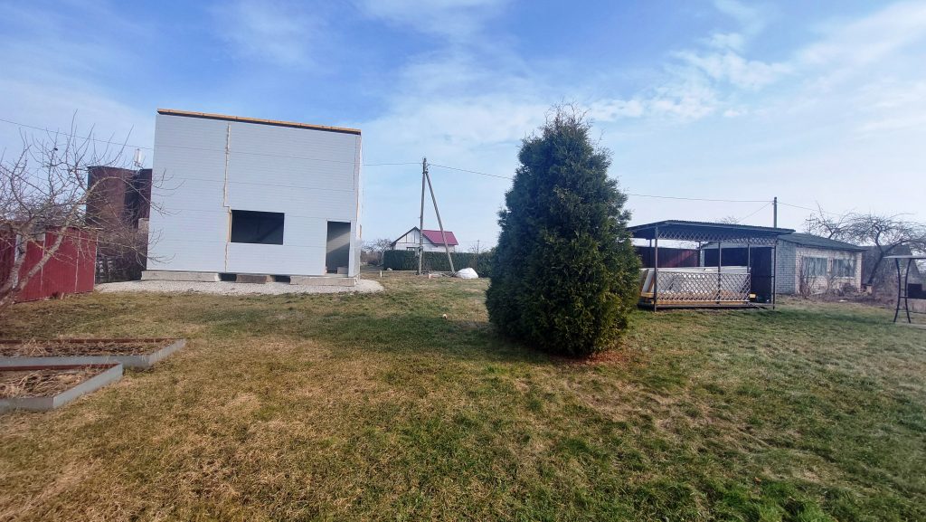 Установлен новый металлический каркас двухэтажного дома, общий метраж  – 56 м2, в планах было строительство дома для круглогодичного проживания;