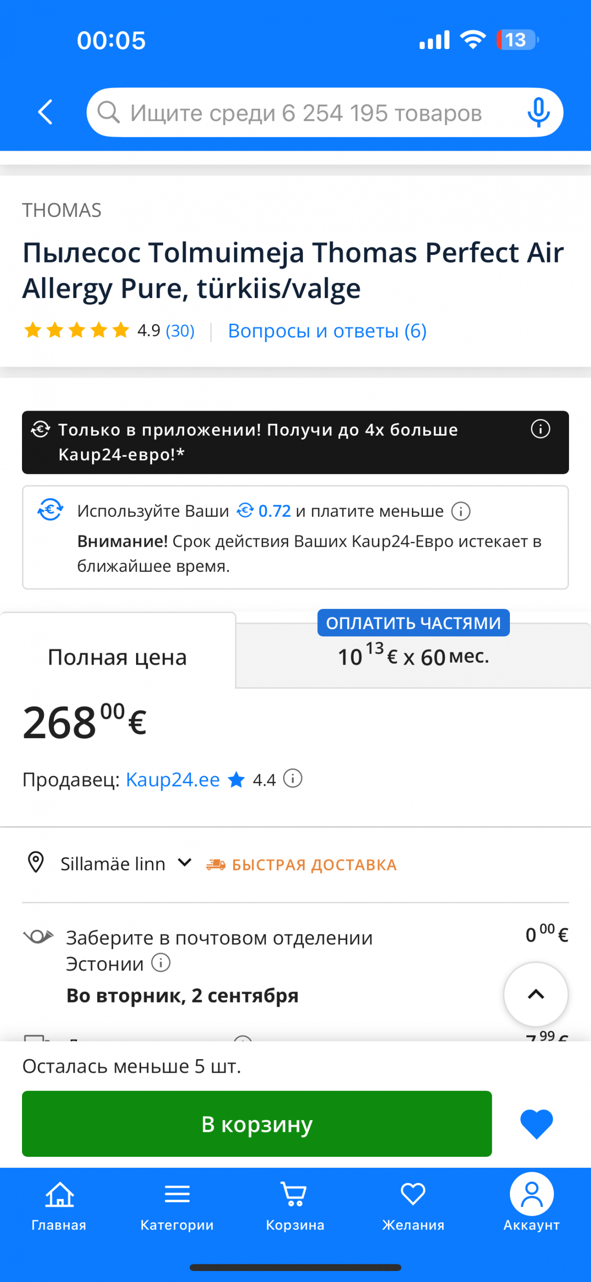 Продам пылесос Tolmuimeja Thomas Perfect Air Allergy Pure, türkiis/valge. Цена 50 евро
