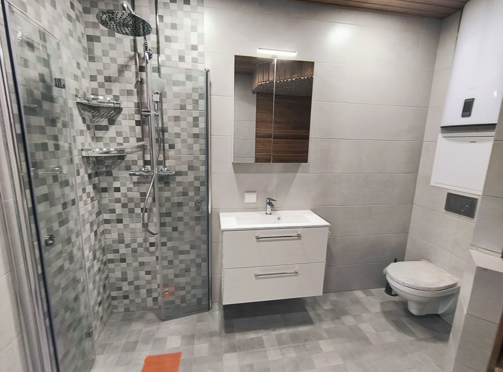 Санузел: Душ, новая сантехника и трубопровод