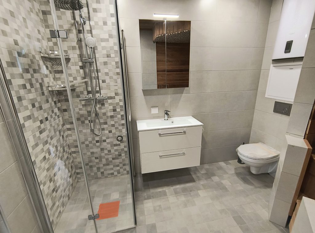 Санузел: Душ, новая сантехника и трубопровод