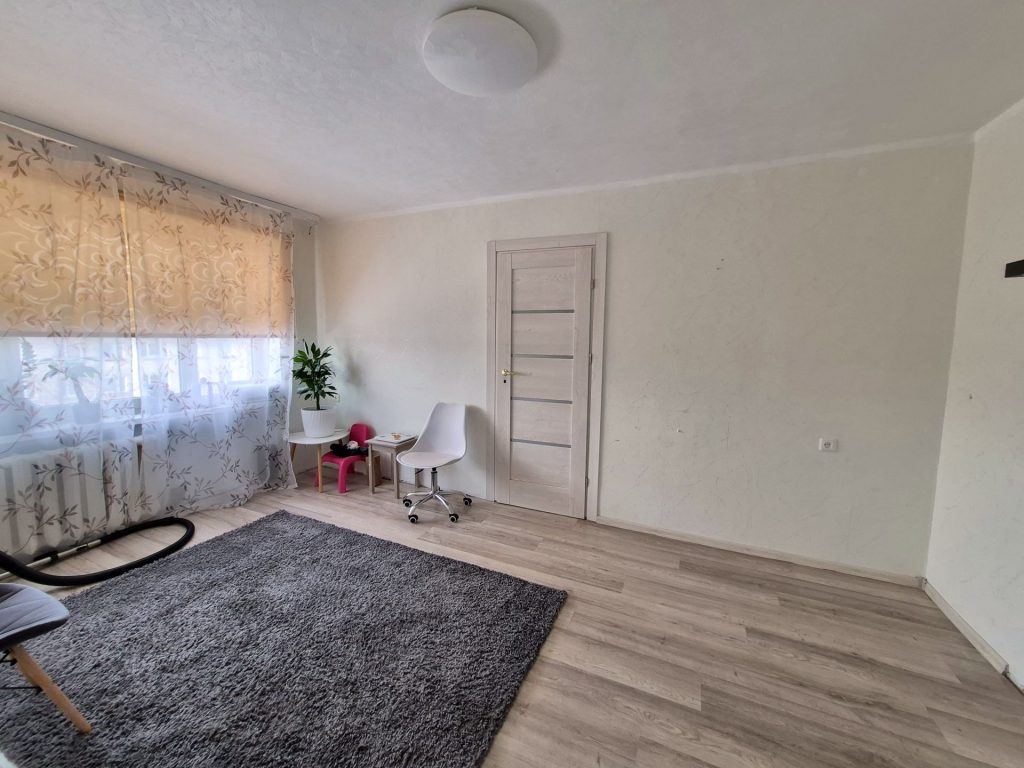-В комнате и в ванной недавно выполнен косметический ремонт. В отделке использованы светлые природные оттенки, которые будут оставаться актуальными всегда.