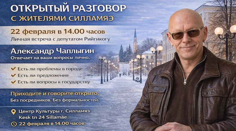 22 февраля в 14:00 состоится личная встреча с депутатом Рийгикогу. Александр Чаплыгин отвечает на ваши вопросы лично.