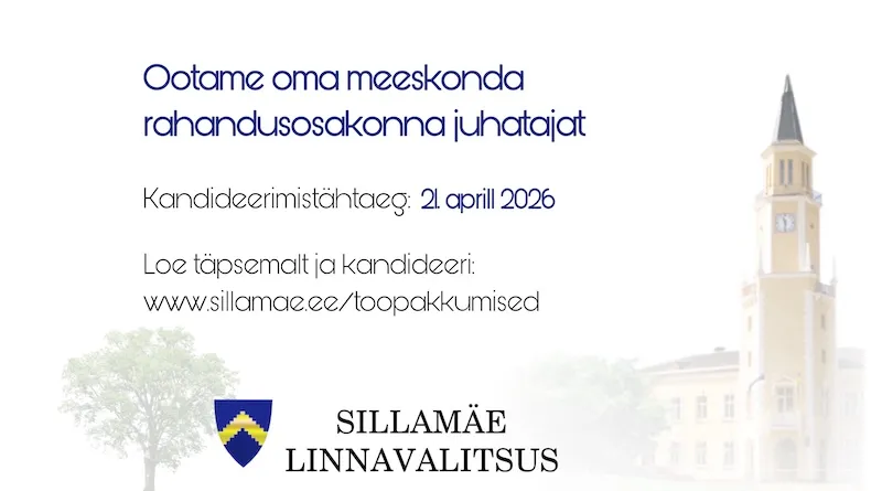 Ootame Sinu CV-d, haridust tõendavat dokumenti, motivatsioonikirja koos palgasooviga hiljemalt 21. aprilliks 2026. a e-posti aadressile linnavalitsus@sillamae.ee märksõnaga „Rahandusosakonna juhataja“.
