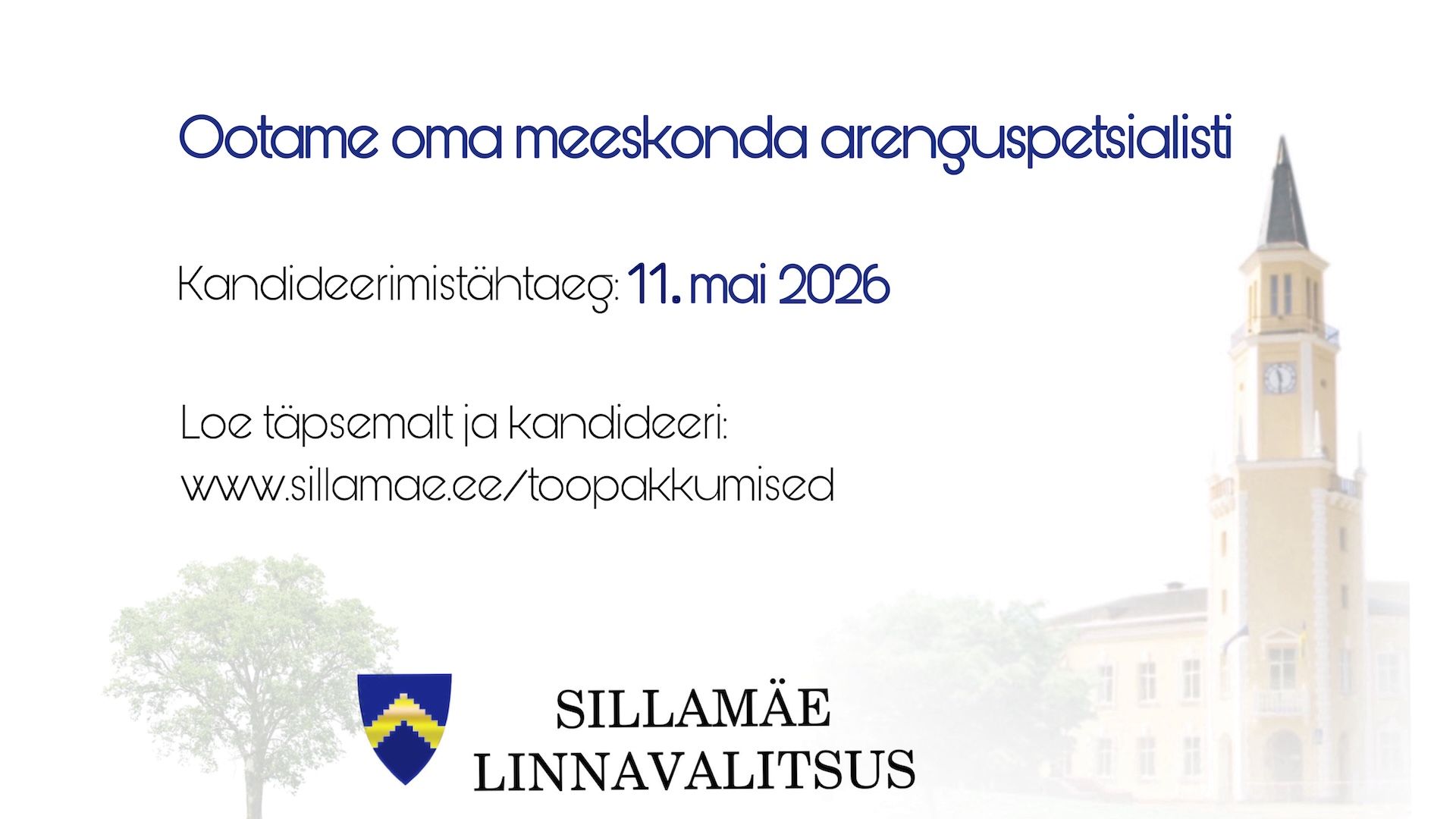 Sillamäe Linnavalitsus otsib oma meeskonda arenguspetsialisti. Kandideerimistähtaeg on 11. mai 2026.