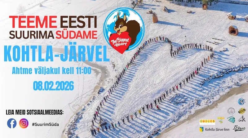 8. veebruaril kell 11.00 koguneme Ahtme linnaväljakule, et olla osa soojast ja ühendavast aktsioonist „Eesti suurim süda“.