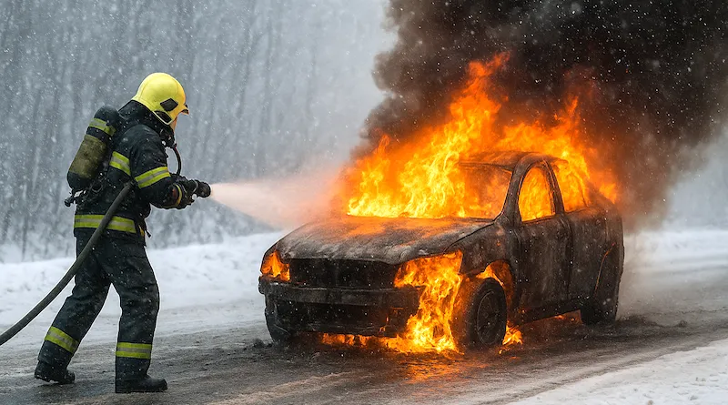 Загорелся автомобиль. Спасатели потушили пожар и охладили рядом стоящие машины. Пострадавших нет. Автомобиль полностью сгорел. Полиция продолжает расследование.