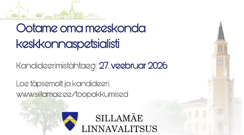Dokumendid palume esitada hiljemalt 27. veebruariks 2026. a Sillamäe Linnavalitsuse e-posti aadressile margarita.maiste@sillamae.ee märksõnaga “Keskkonnaspetsialist“.